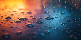 Water Droplets on Colorful Surface Background, Sparkling Droplets Reflecting Light on a Vibrant, Multicolored Surface
