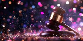 Wooden Gavel Bokeh Background, Close-Up of a Gavel with Soft, Blurry Bokeh Lights Creating a Professional and Elegant Setting