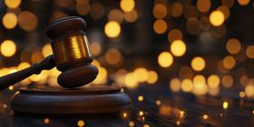 Wooden Gavel Bokeh Background, Close-Up of a Gavel with Soft, Blurry Bokeh Lights Creating a Professional and Elegant Setting