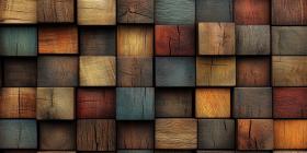 Wood squares in various shades background, a collection of wooden tiles in different tones, from light to dark, arranged neatly to create a warm, textured surface with a natural, earthy feel.