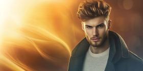 Young male handsome fashion model with copyspace background, a stylish and confident individual posing in trendy attire, with a clean, neutral background that offers ample space for text or branding.