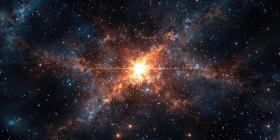 Vibrant Supernova Explosion: A Detailed Close-Up of a Star's Fiery Demise with Radiant Light and Swirling Gas Clouds in Orange and Blue