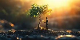 A Tranquil Morning: Person Connecting with Nature in a Serene Meadow as the Sun Rises, Symbolizing Growth and Renewal