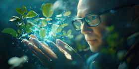 A Tranquil Morning: Person Connecting with Nature in a Serene Meadow as the Sun Rises, Symbolizing Growth and Renewal