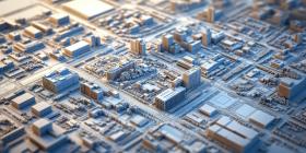Miniature Urban Model: Detailed Scale Representation of a City or University Campus with Prominent Historical Building, Roads