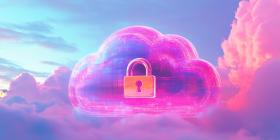 Secure Cloud Storage: Artistic Representation of a Colorful Cloud with Padlock Symbol, Emphasizing Data Security and Protection