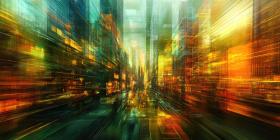 Stunning Urban Architecture: Sunset Reflections on Tall, Modern Glass Buildings with Vibrant Colors of Orange, Pink, and Blue