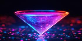 Futuristic Digital Funnel: Dynamic Purple and Pink Abstract Artwork with Glowing Dots and Lines, Depicting Depth, Motion, and Energy in a Sci-Fi Inspired Design