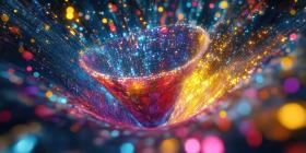 Futuristic Digital Funnel: Dynamic Purple and Pink Abstract Artwork with Glowing Dots and Lines, Depicting Depth, Motion, and Energy in a Sci-Fi Inspired Design
