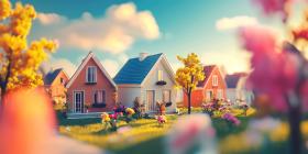 Charming Suburban Neighborhood Model: Detailed Miniature Scene Featuring Vibrant Houses, Distinct Architectural Features