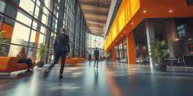 Modern Office Workspace: Stylish Desk Setup with Laptop, Coffee Cup, and Office Supplies in a Contemporary Setting