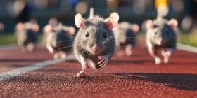 Athletic Mice on Running Track: Group of Small Gray Mice Participating in a Humorous and Engaging Race on a Red Track