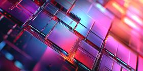 Vibrant Abstract Geometric Design: Complex Arrangement of Rectangular and Square Shapes in Layers, Featuring Shades of Pink, Purple, Blue, and Red