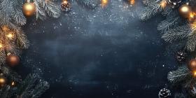 Christmas Blackboard: Wooden-Framed Blackboard on a Wooden Surface, Surrounded by Holiday Decor Including a Christmas Tree with Lights and Ornaments