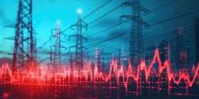 Electrical Power Transmission with Data Overlay: High-Voltage Power Lines and Towers Against a Clear Blue Sky