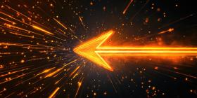 Dynamic Fiery Arrow: Glowing Arrow with Trail of Sparks and Light Against a Dark Background, Capturing Speed and Energy