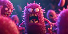 Cartoonish depiction of a coronavirus, its spikes resembling menacing tentacles and its expression one of pure aggression, serves as a lighthearted reminder of the ongoing battle against this invisible enemy