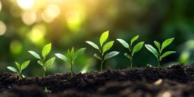 A row of young seedlings reaching for the sunlight, symbolizing the power of life, growth, and the promise of a brighter future