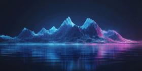A breathtaking panorama of a moonlit landscape, where snow-capped mountains rise majestically above a tranquil lake