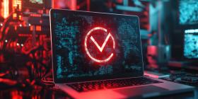 A laptop screen glows with an ominous red warning sign, casting a stark shadow in a dimly lit room, serving as a stark reminder of the ever-present threat of cyberattacks in our increasingly connected world