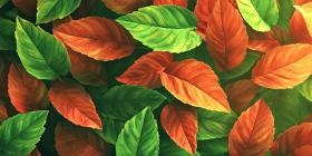 A vibrant tapestry of leaves, where fiery reds and vibrant greens intertwine, captures the essence of the changing seasons and the beauty of autumn's transformation