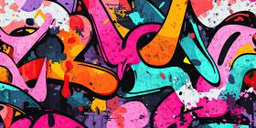 A vibrant explosion of colors and textures, this graffiti artwork bursts with energy and creativity, transforming a concrete canvas into a dynamic expression of urban art