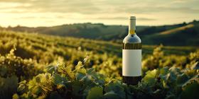A bottle of wine stands tall amidst a picturesque vineyard, bathed in the warm glow of the setting sun, inviting you to raise a glass and savor the fruits of the vine