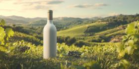 A bottle of wine stands tall amidst a picturesque vineyard, bathed in the warm glow of the setting sun, inviting you to raise a glass and savor the fruits of the vine