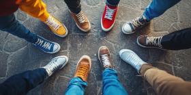 A Kaleidoscope of Kicks: A vibrant circle of colorful sneakers, each with its own unique flair, celebrates individuality and the joy of self-expression