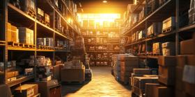 A vast warehouse, filled with rows of neatly stacked boxes, stands ready to fulfill orders and connect businesses with their customers