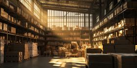 A vast warehouse, filled with rows of neatly stacked boxes, stands ready to fulfill orders and connect businesses with their customers