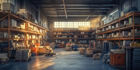 A vast warehouse, filled with rows of neatly stacked boxes, stands ready to fulfill orders and connect businesses with their customers