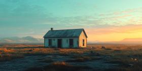 A majestic mountain peak, bathed in the vibrant hues of a breathtaking sunset, overlooks a picturesque village nestled amidst the dramatic Himalayan landscape