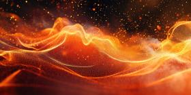 A mesmerizing swirl of incandescent particles ignites the darkness, creating a dynamic and captivating display of energy and movement