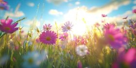 A field of wildflowers, bathed in warm sunlight, bursts with color and life, as petals dance in the breeze, celebrating the arrival of a new season