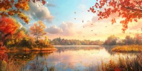 A field of vibrant red leaves bathed in the warm light of the setting sun, creating a scene of tranquility and natural beauty