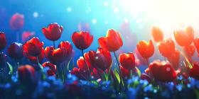 Vibrant red tulips, bathed in warm sunlight, reach for the sky, creating a scene of vibrant beauty and boundless hope