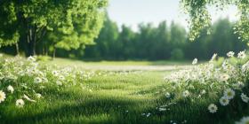 A vibrant field of daisies stretches towards a horizon bathed in the golden light of sunset, creating a scene of idyllic beauty and endless possibilities
