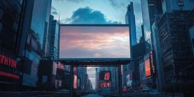 A large billboard stands tall against a vibrant sunset sky, its blank surface a canvas for creativity and limitless possibilities