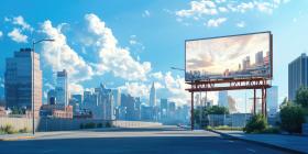 A large billboard stands tall against a vibrant sunset sky, its blank surface a canvas for creativity and limitless possibilities