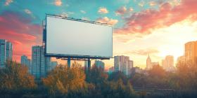 A large billboard stands tall against a vibrant sunset sky, its blank surface a canvas for creativity and limitless possibilities