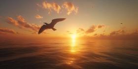A Fiery Farewell: Silhouetted against a fiery sunset, a flock of birds takes flight, their wings spread wide as they soar into the vibrant sky, creating a scene of freedom and boundless possibility