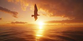 A Fiery Farewell: Silhouetted against a fiery sunset, a flock of birds takes flight, their wings spread wide as they soar into the vibrant sky, creating a scene of freedom and boundless possibility