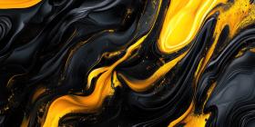 An abstract artwork where deep black swirls intertwine with vibrant streaks of gold, creating a mesmerizing and visually captivating composition