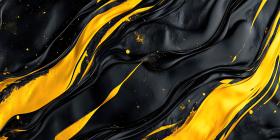 An abstract artwork where deep black swirls intertwine with vibrant streaks of gold, creating a mesmerizing and visually captivating composition
