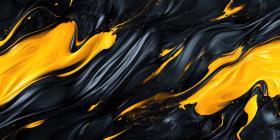 An abstract artwork where deep black swirls intertwine with vibrant streaks of gold, creating a mesmerizing and visually captivating composition