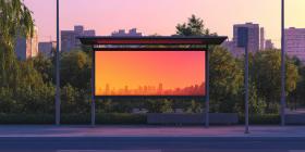 A large, blank billboard stands tall against a breathtaking sunset, its vast surface a canvas for imagination and the possibilities of visual storytelling