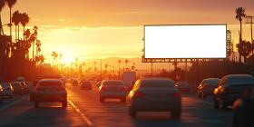 A large, blank billboard stands tall against a breathtaking sunset, its vast surface a canvas for imagination and the possibilities of visual storytelling