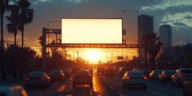 A large, blank billboard stands tall against a breathtaking sunset, its vast surface a canvas for imagination and the possibilities of visual storytelling