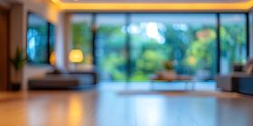 A warm ray of sunlight streams through a window, illuminating a cozy living room, where a potted plant sits on a coffee table, adding a touch of nature to the space